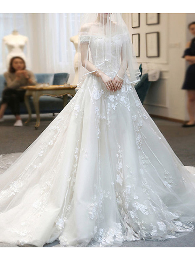 A-Line Affordable Plus Size Long Sleeve Wedding Dresses