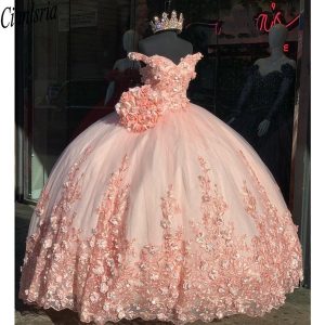 2021 Ball Gown Pink Quinceanera Dress Lace Applique Beading Sweet 16 Pageant Gowns vestidos de 15 años